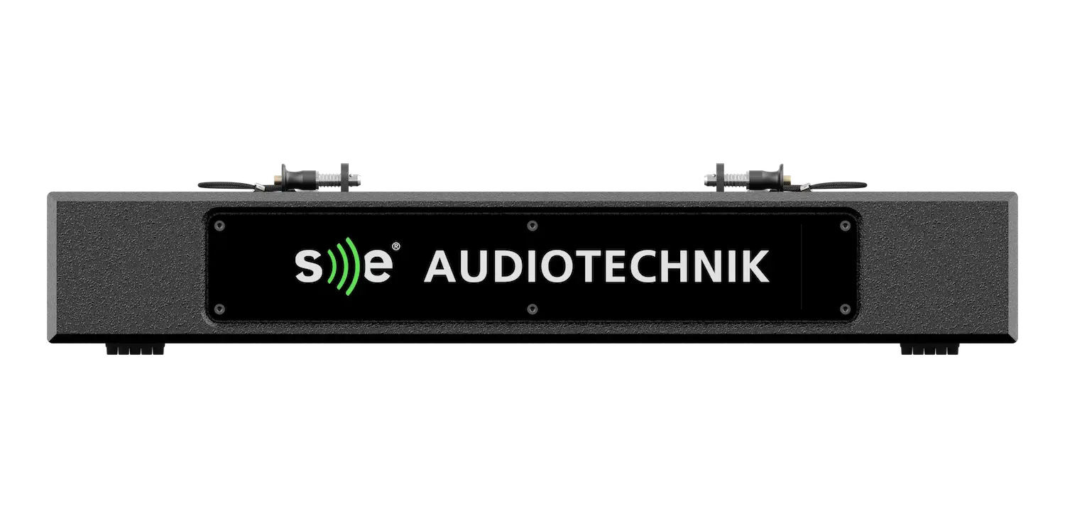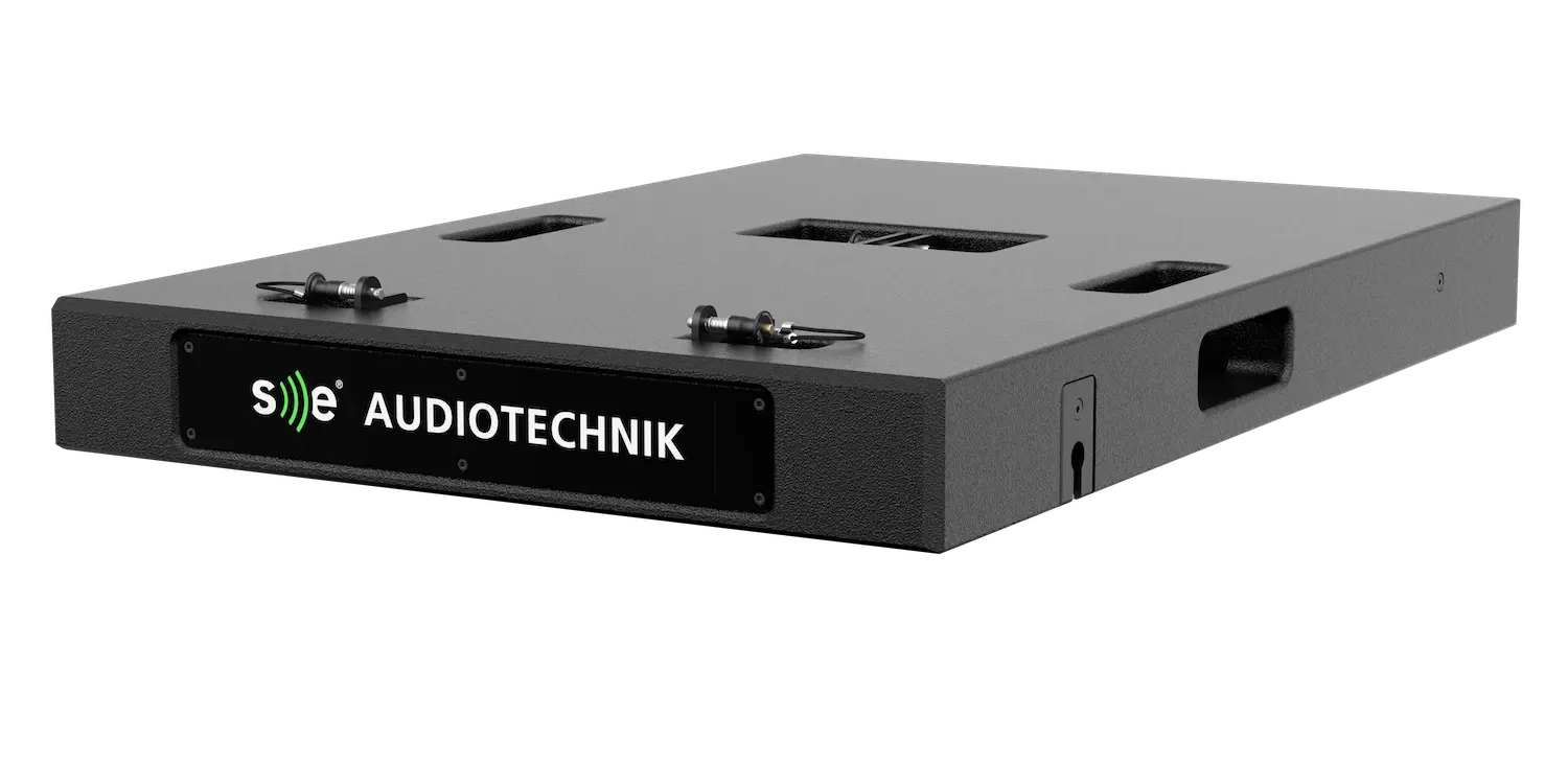 | Ausstattung | Zwei seitliche, in das Gehäuse eingelassene Griffe Vier Gummifüße und obere Schlitze für Stapelung Front SE Audiotechnik® Backlight-Panel |